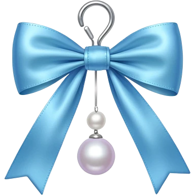 Soft blue bow with hanging pearl emoji