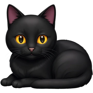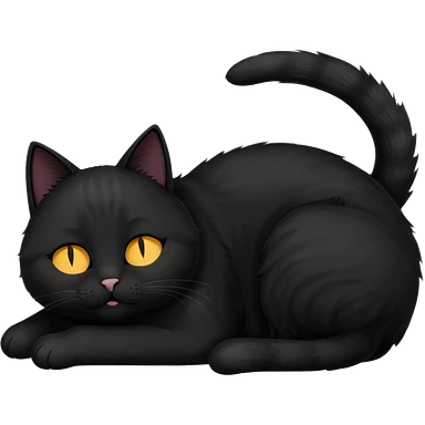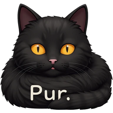 Black cat laying down with eyes closed and the word 'purr' above its head emoji