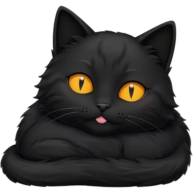 Black cat laying down with eyes closed and the text 'purr' above its head emoji