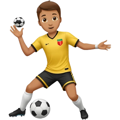 a white soocer player dribbling and playing guitar at the sametime emoji