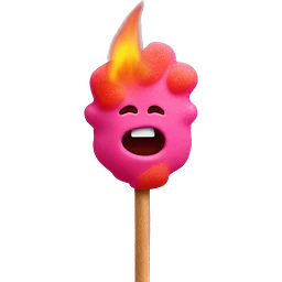 Sour patch kid with a stick on fire in its mouth emoji | AI Emoji Generator