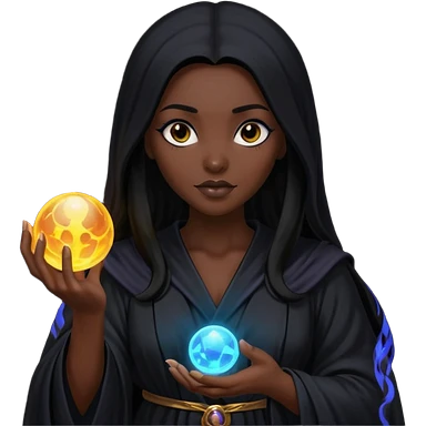 Baba Yaga sorceress woman flying in a mortar, magical aura emoji