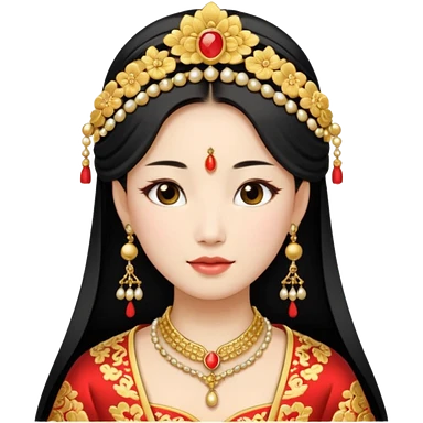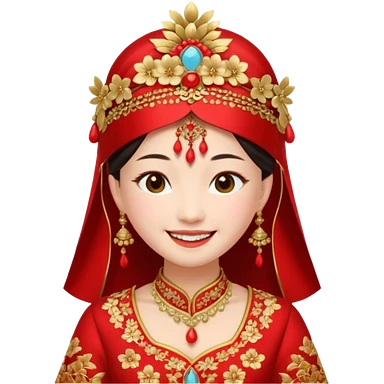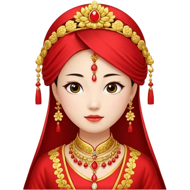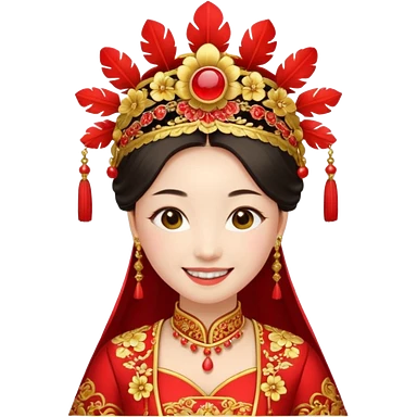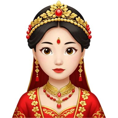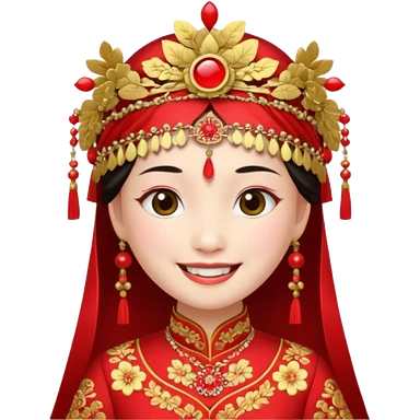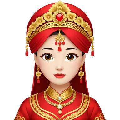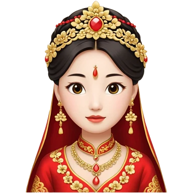 Chinese bride getup, heavy jewelary, traditional. emoji
