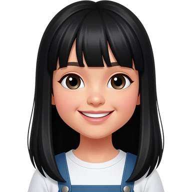 Southeast Asian girl with bangs and l9ng black hair, cute and smiling. emoji