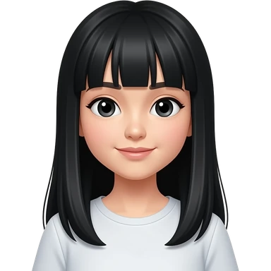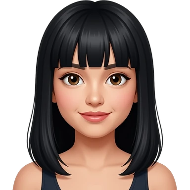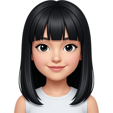 Southeast Asian women with bangs and black straight long hair until under chest, had black eyes and has cute and sweet face. emoji | AI Emoji Generator