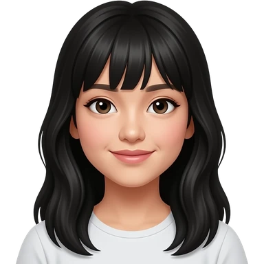 a southeast asian fair skinned girl with slightly wavy long layered black hair with curtain bangs wearing white top emoji