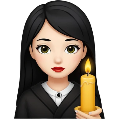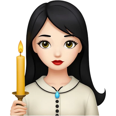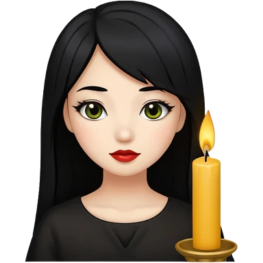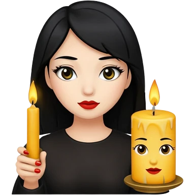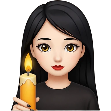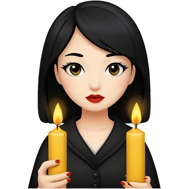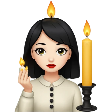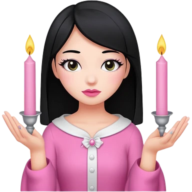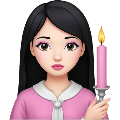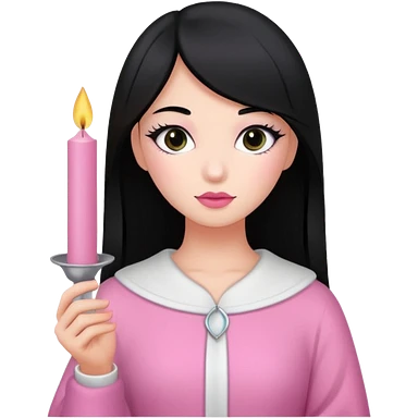 A gurl with black hair pink cloth make up holding a white candle emoji