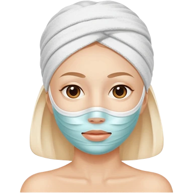 Lady with spa mask beauty full face relaxing green eyes pink lips emoji