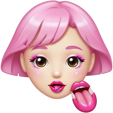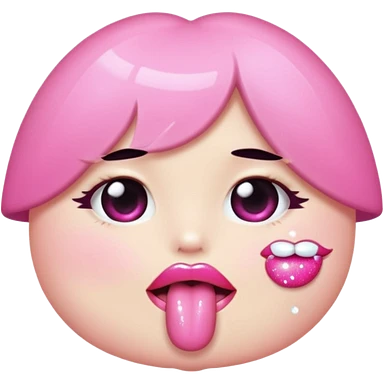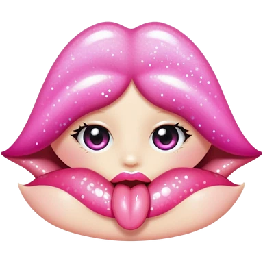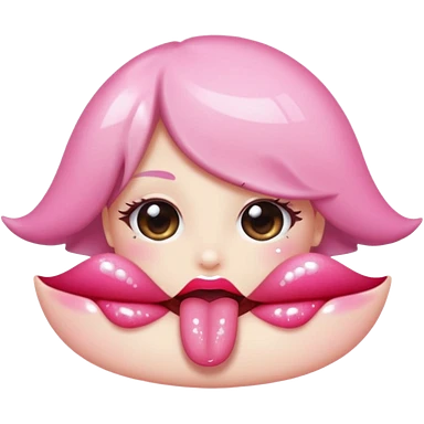 sparkly glossed lips emoji, tongue peek, kawaii shine emoji