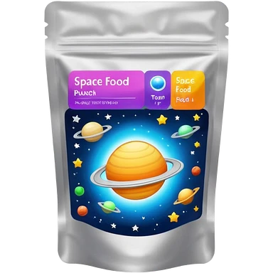 Space food pouch Bright, synthetic color label.. emoji