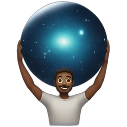 Spaceship with a large rounded belly in the middle, rocket boosters, personified with a happy face emoji
