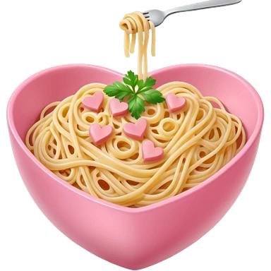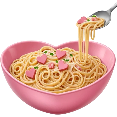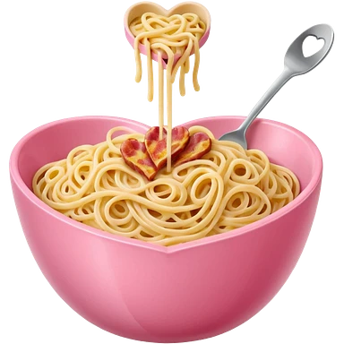 Spaghetti carbonara, in a pink bowl, the bowl should be heartshaped emoji