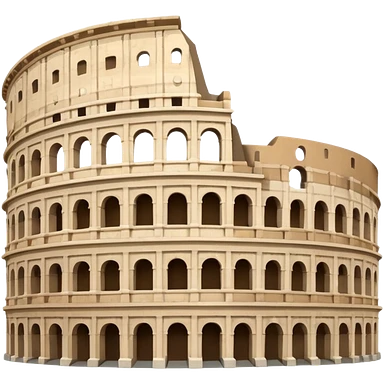 An emoji of the ancient Roman Colosseum. It is shown as a massive oval amphitheater with arched entrances and tiered seating. emoji