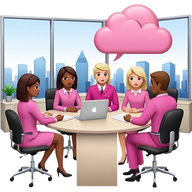 people in pink SPAM office setting having a SPAMGAGE meeting landscape emoji