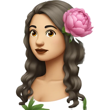 Peonies around head of a white Spanish raven brunette long hair chubby woman emoji
