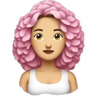 Peonies around head of a white Spanish brunette long hair chubby woman emoji