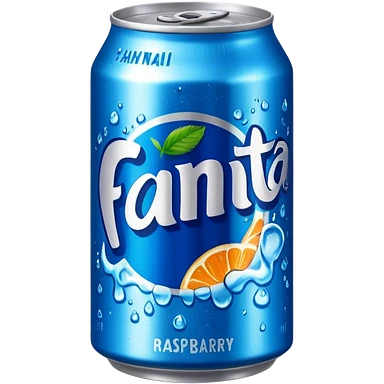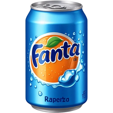 Blue Fanta can with Greek flag printed. An orange next to it emoji