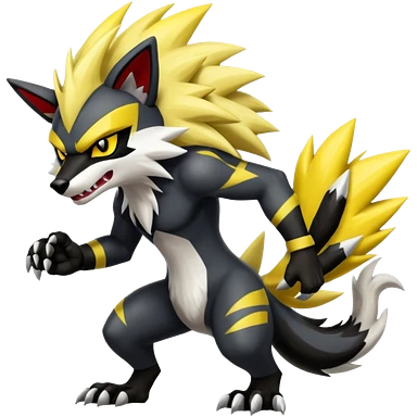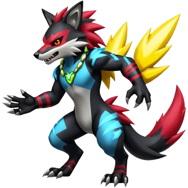 Shiny furry Badass cool Zeraora-Zoroark-Obstagoon-fusion emoji