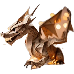 Sparkling patterned Beige Origami dragon with a dried flower crown made of newspapers intricate patterns surrounded by fairy lights emoji