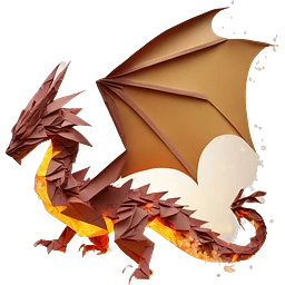 Sparkling patterned Beige Origami dragon with made of newspapers intricate patterns surrounded by fairy lights nebula galaxy stars swirls iridescent on fire covered in dried flowers emoji