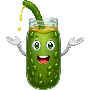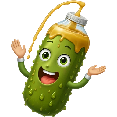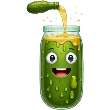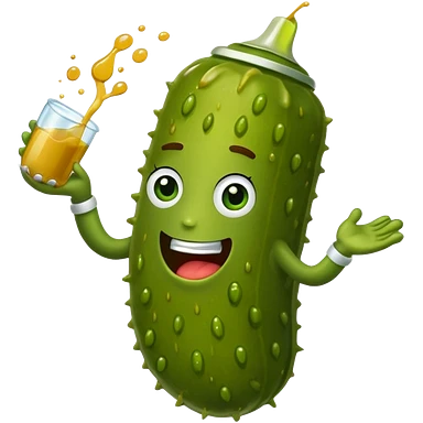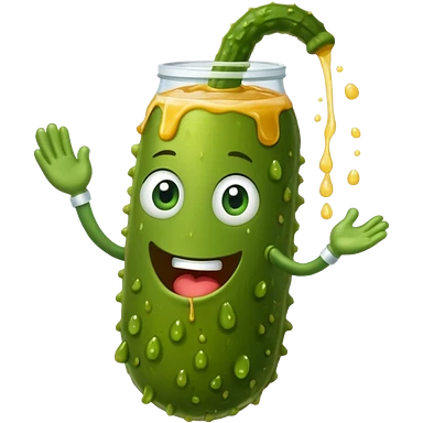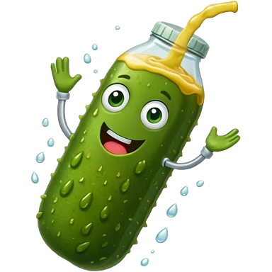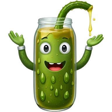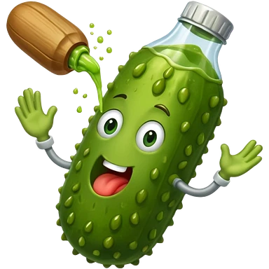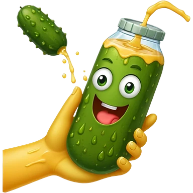 a cartoon pickle with juice squirting from the top of it, being squeezed by a hand emoji