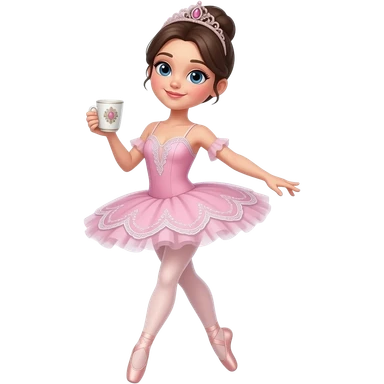 a ballerina with a teacup for a head. She is wearing a classic pink tutu and ballet slippers emoji