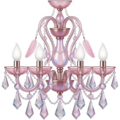 PInk iridescent Bell with chained hanging crystals with feathers CHANDELIER emoji