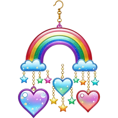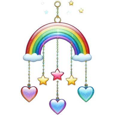 Sparkly glittery aesthetic Iridescent rainbow suncatcher hanging hearts and tiny stars emoji | AI Emoji Generator