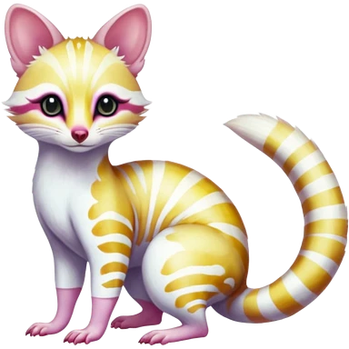 Iridescent white albino colorful fruity blingy crystalline Genet-Numbat-Ocelot-Tanuki-Ocicat-hybrid-fusion, full body emoji