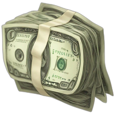 wad of cash wrapped in a pink bow, apple emoji style emoji