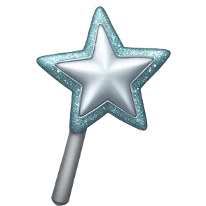 A sparkling fairy wand emoji with a silver handle and a starburst tip, glowing with icy blue and white sparkles emoji
