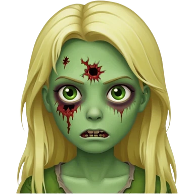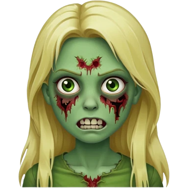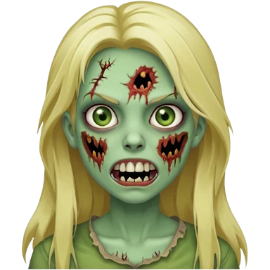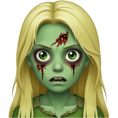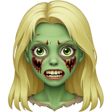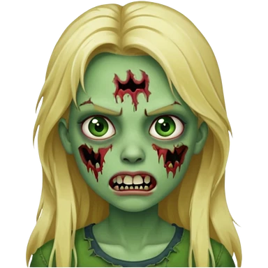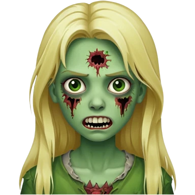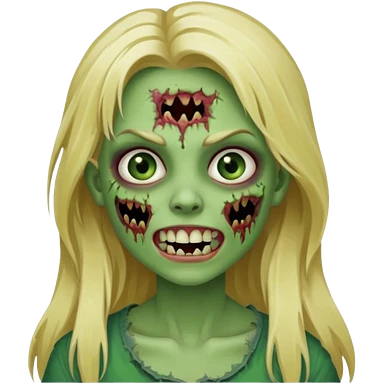 girl zombie with blonde long hair with teeth green skin and with no angry face emoji