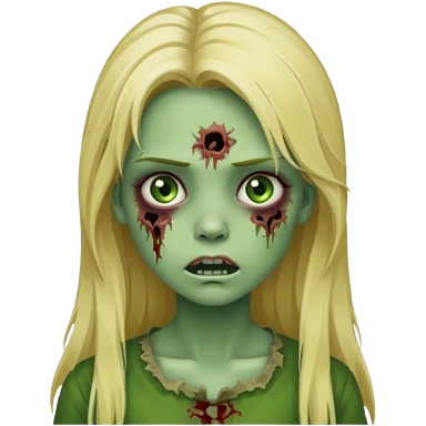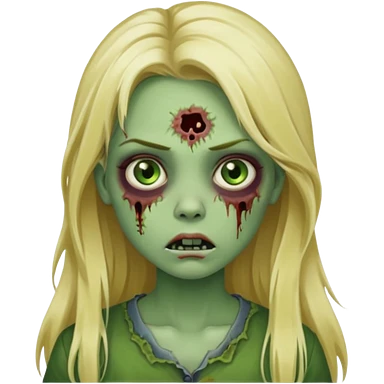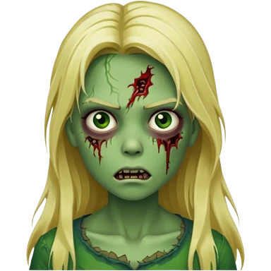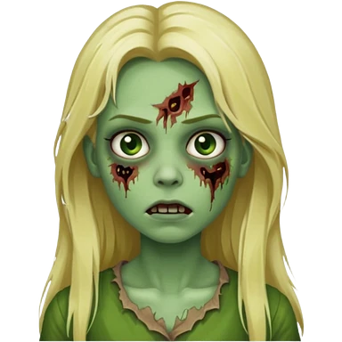 girl zombie with blonde long hair with teeth green skin and serious face emoji