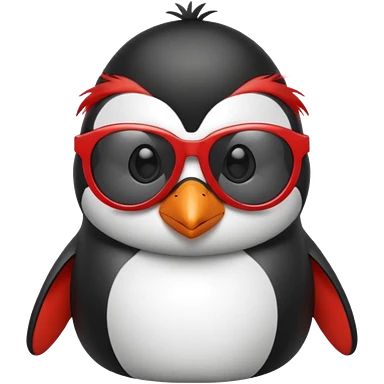 Penguin • High-Realism 3D Rendering • Sunglasses with Red Frames • Small Tuft/Lock of Hair on the Head emoji