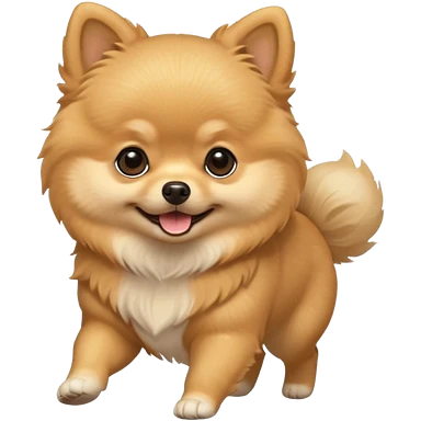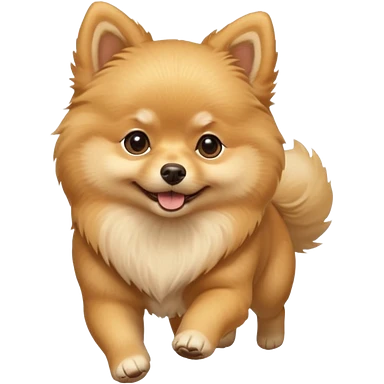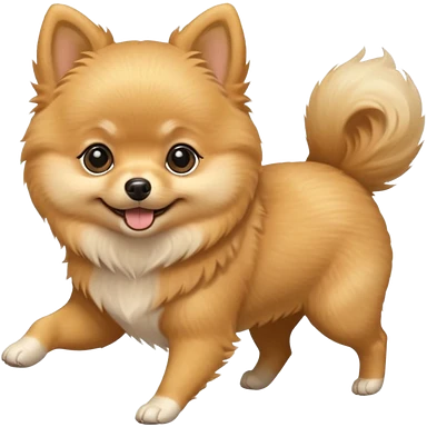 Create a cute tiny golden pomerania small not so furry- running playing and so emoji