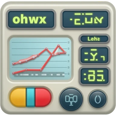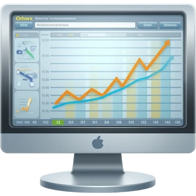 KPI dashboard icon emoji with rounded screen, glossy finish, soft shadow, bar chart with four colorful bars (blue, green, yellow, orange), thin white line graph overlay, gradient background, vibrant harmonious colors, transparent background emoji