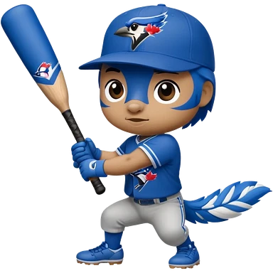 bluejay standing swinging bat with toronto blue jays baseball hat emoji