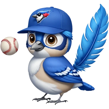 bluejay bird pitching baseball wearing toronto blue jays baseball cap emoji