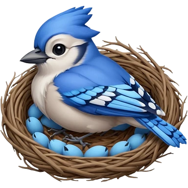 baby bluejay bird, sleeping in nest, with blue jays baseball hat emoji