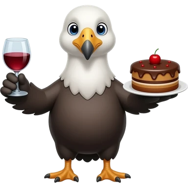 Albatross holding a glass of wine and a chocolate lava cake emoji