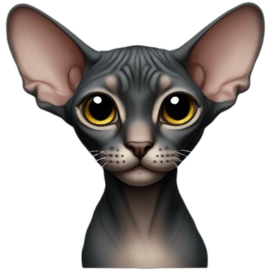 a light gray sphinx cat with a dark muzzle in a soft brown blouse sits emoji