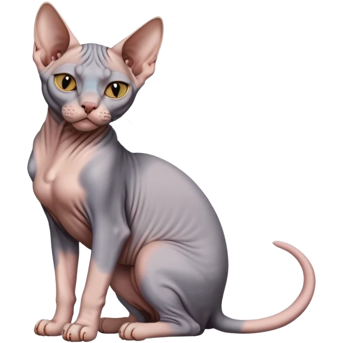 gray sphynx hairless cat full body sitting emoji