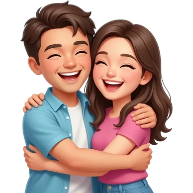 Two friends hugging, a girl with blonde hair and a guy with dark curly hair emoji