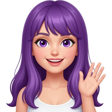sexy girl with long purple hair and purple eyes says hi emoji