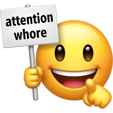 Yellow smiley pointing to you holding up a sign sign that says "attention whore" emoji