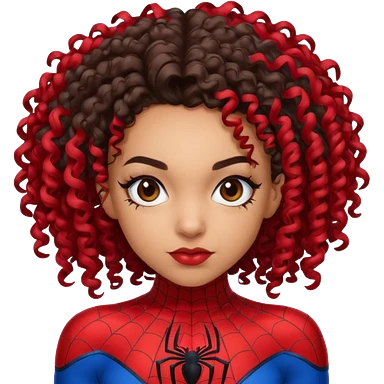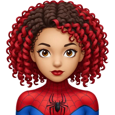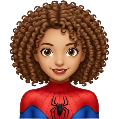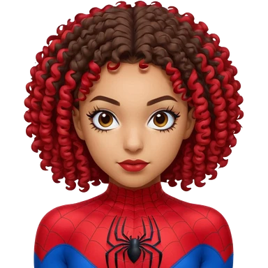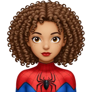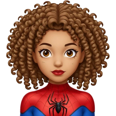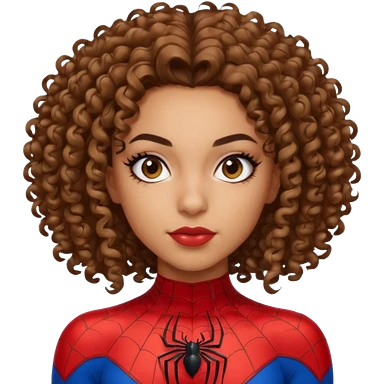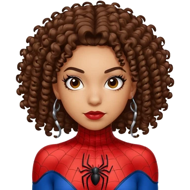 Lightskin girl with curly hair, eyebrow piercing in left side, wearing a spider man costume emoji