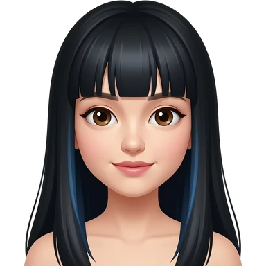 pretty chinese princess with long black hair and bangs in blue with deep brown eyes emoji