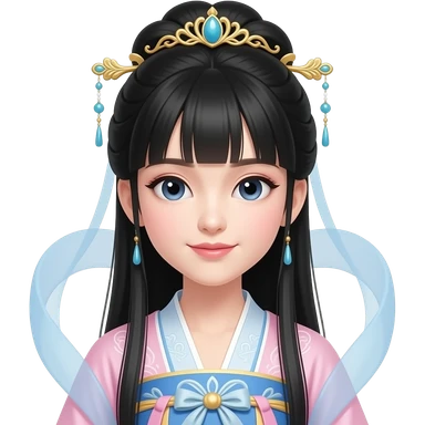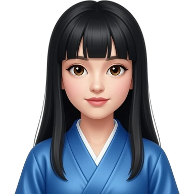 pretty chinese princess with long black hair and bangs in blue robe with deep brown eyes emoji