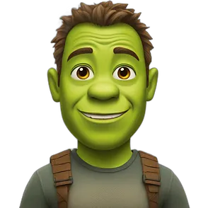 3d sphere with a cartoon confident water Shreck skin texture with spider eyes emoji