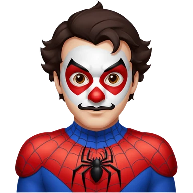 Create a man with brown eyes and dark hair into Spider-Man and a clown nose emoji